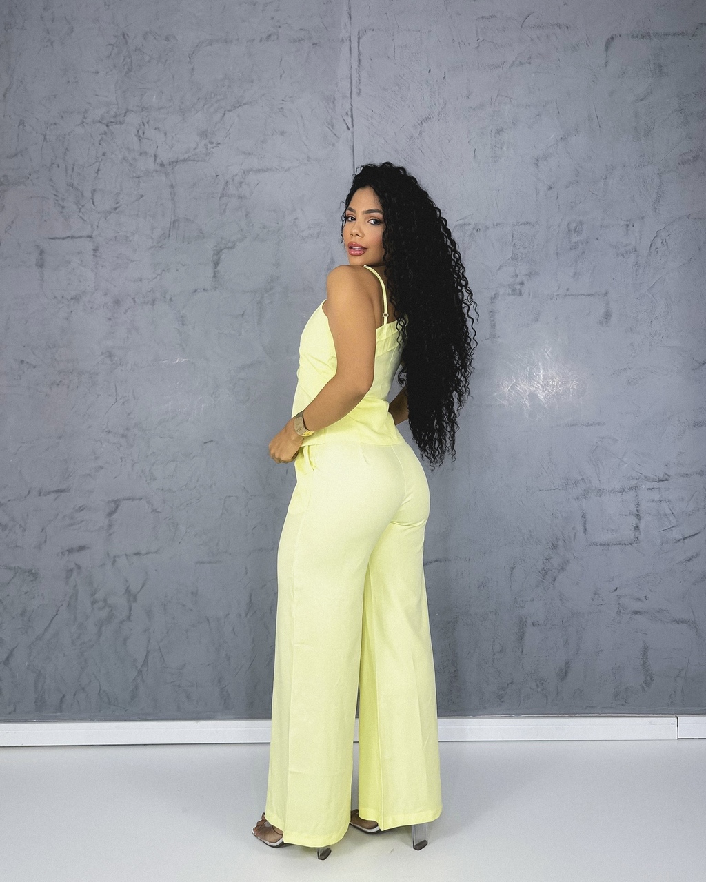 Conjunto Calça e Blusa Babado Cor Amarelo