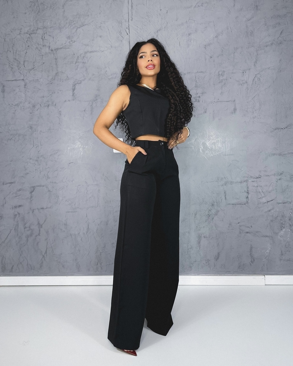 Realce sua Elegância Apresentamos o Conjunto Calça e Cropped Importado Cor Preto, a escolha perfeita para quem busca unir sofisticação e estilo em qualquer ocasião. Esta peça única combina um design moderno e atemporal, ideal para eventos formais ou saídas casuais.