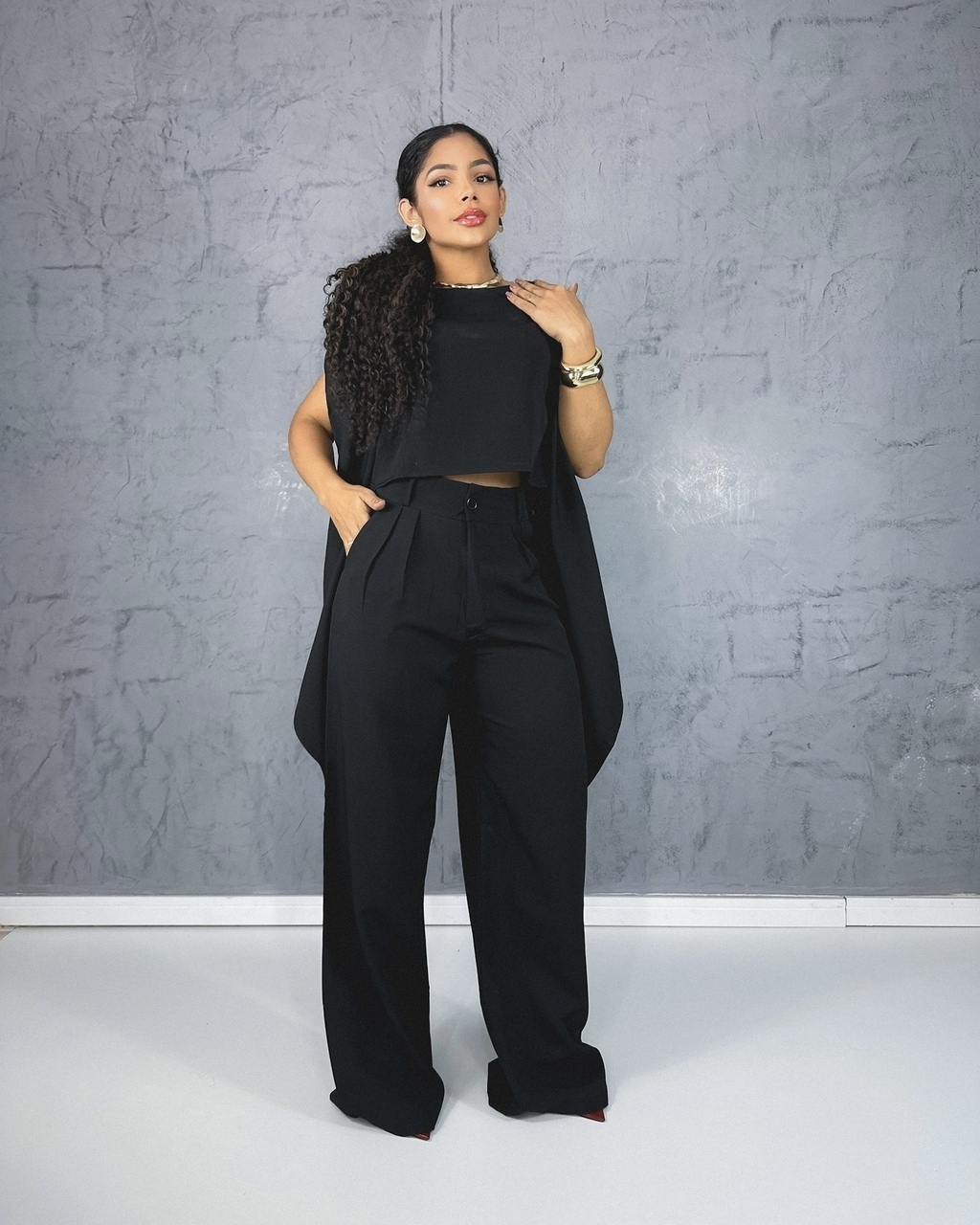 Design Sofisticado Com um cropped de manga longa que valoriza a silhueta feminina e calças que se ajustam perfeitamente, este conjunto na cor preta é uma peça atemporal. Sua versatilidade permite combinações incríveis com acessórios variados, elevando seu estilo a novos patamares.