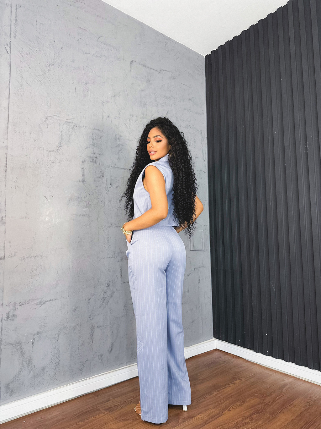 Transforme seu guarda-roupa com o Conjunto Risca de Giz Cor Azul!